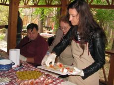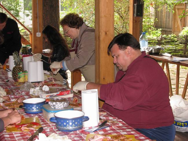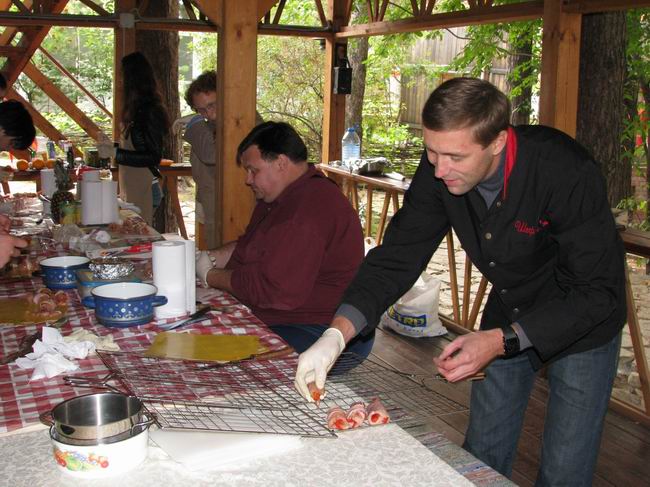 20 августа студия «Foodsmile» открыла кулинарный сезон мастер-классом на свежем воздухе. Под руководством шеф-повара кафе «Эльзас» Александра Исаева гости приготовили: свиниу-барбекю в апельсиновом соусе, куриные рулеты с беконом, жареные на открытом огне, соус карри с ананасом, соус сальса и десерт ананасы-барбекю-пинаколада.