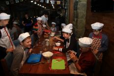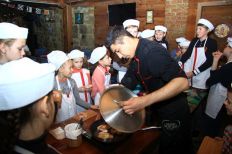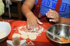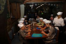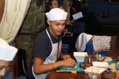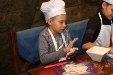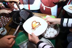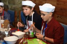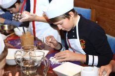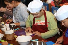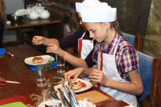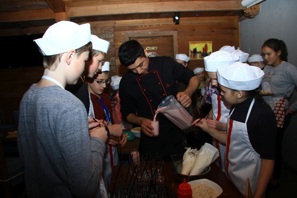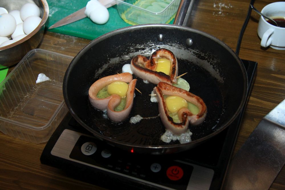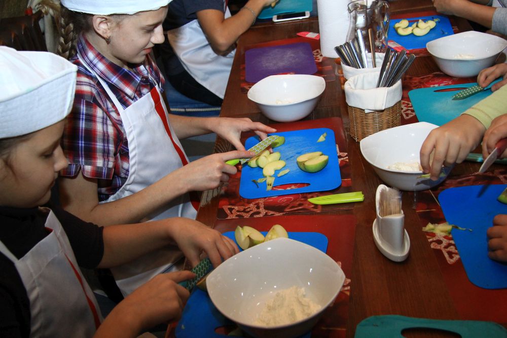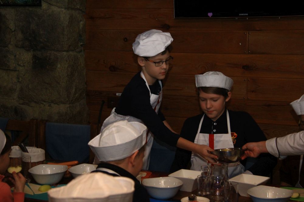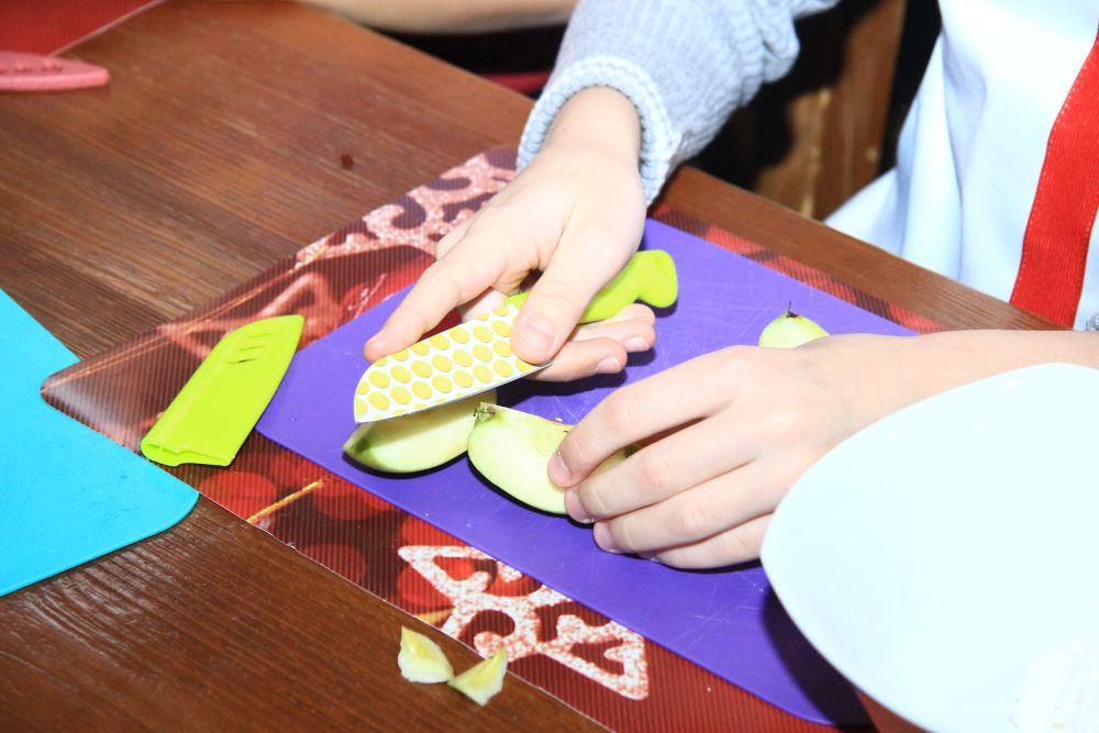 На занятиии про завтраки мы пекли круассаны с сыром и с яблоком, запекали сырники, жарили креативную яичницу в сердечках из сосисок и готовили мегаполезный смузи "Завтрак чемпиона". Таким образом, мы установили рекорд, за один день позавтракав целых 4 раза!