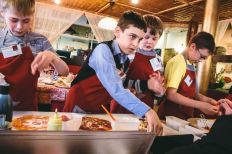 Под его чутким руководством веселая компания приготовила салат с чипсами и пиццу, а также ребята смешали коктейль «Мохито». Все было на взрослом уровне: салаты оформляли по-ресторанному, с кольцами и узорами из бальзамика, а коктейли делали с настоящими барменскими гаджетами!