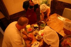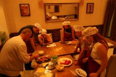 Сербская кухня - одна из самых здоровых и щедрых, но, признаться, такого пира мы даже не ожидали! Шеф-повар гриль-бара "Сливовица" Миливое Лукич поделился с нами секретами, как у сербов получается такое умопомрачительное мясо на гриле, и мы самолично приготовили огромные сочные плескавицы на гриле, навертели целую гору ароматных чевапчичи (это такие колбаски), нафаршировали и запекли баклажаны... А на десерт приготовили освежающий сорбето с шампанским. Посидели и пообщались по-балкански душевно!