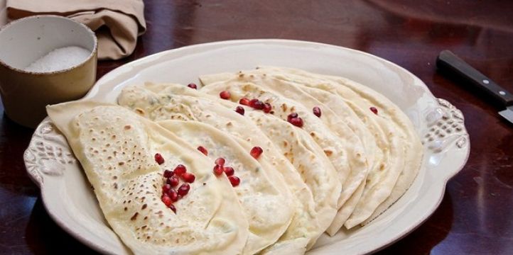 Рецепты Георга Хардзеишвили, шеф-повара ресторана «Хмели-Сунели» Для теста: 1 стакан молока 500 г муки (или сколько возьмет) Соль – 1 ч.л. Для начинки: Сыр – имеретинский, адыгейский, сулугуни – а лучше смесь – 300 г Зелень (кинза, петрушка, укроп, базилик, эстрагон, мята и др. в любых комбинациях) – 300 г Соль, перец. Замесить из муки, молока и воды эластичное, гладкое тесто, раскатать тонкие круги размером с блюдце – 2-3 мм толщиной. Для начинки смешать натертый молодой сыр (идеально – имеретинский и сулугуни), добавить мелко нарезанную зелень. Посолить, поперчить, перемешать. На раскатанные круги класть начинку – на ½ круга, не очень много, чтобы кутабы получались плоскими. Защипывать края – фигурным ножом для пиццы, делать узорные края вилкой или аккуратно придавливать и обрезать краем тарелки. Выпекать на сухой чугунной сковороде, по 3-4 минуты с каждой стороны, выкладывать на блюдо и смазывать кусочком сливочного масла каждый кутаб. При подаче посыпать пряностью сумах, зернами граната, измельченной зеленью. В качестве соуса можно подать мацони. Вы можете делать кутабы с разными начинками: - с зеленью, слегка припущенной на сливочном масле - с припущенным шпинатом и молодым сыром или творогом - с тушеными ломтиками тыквы и кусочками грецкого ореха - с обжаренным фаршем из баранины. |