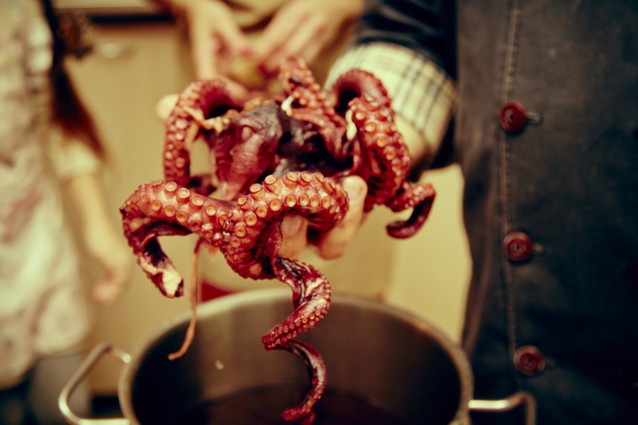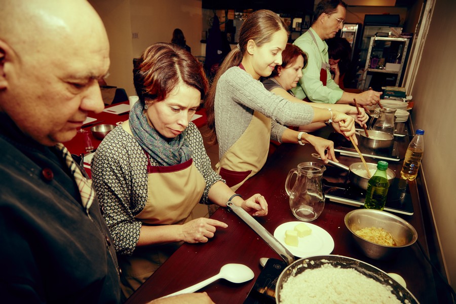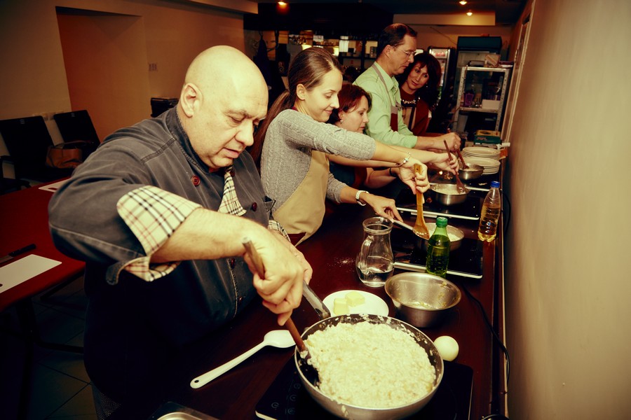 Мы очень долго ждали, когда наш друг Франческо Спампинато откроет свой ресторан, и поэтому с огромной радостью пришли к нему в его биррерию-пиццерию под названием "Простой НЕ ресторан" на мастер-класс итальянской кухни. У нас подобралась замечательная компания, так что вечер прошел в неформальном стиле - как ужин большой итальянской семьи. Готовили замечательные сезонные блюда - ризотто с подпеченной тыквой, сыром бри и грецкими орехами, теплый салат из осьминога с картофелем, скалоппини из телятины с белыми грибами и персики по-пьемонтски с амаретти и шоколадом. Рецепты этих блюд вы скоро сможете найти на www.foodsmile.ru Прекрасная получилась Италия из первых рук, синьор Франческо был, как всегда, обаятелен и щедро делился своими профессиональными секретами. Мы еще не раз вернемся в его "Простой НЕ ресторан"!