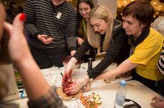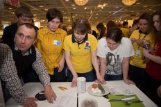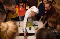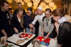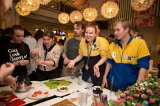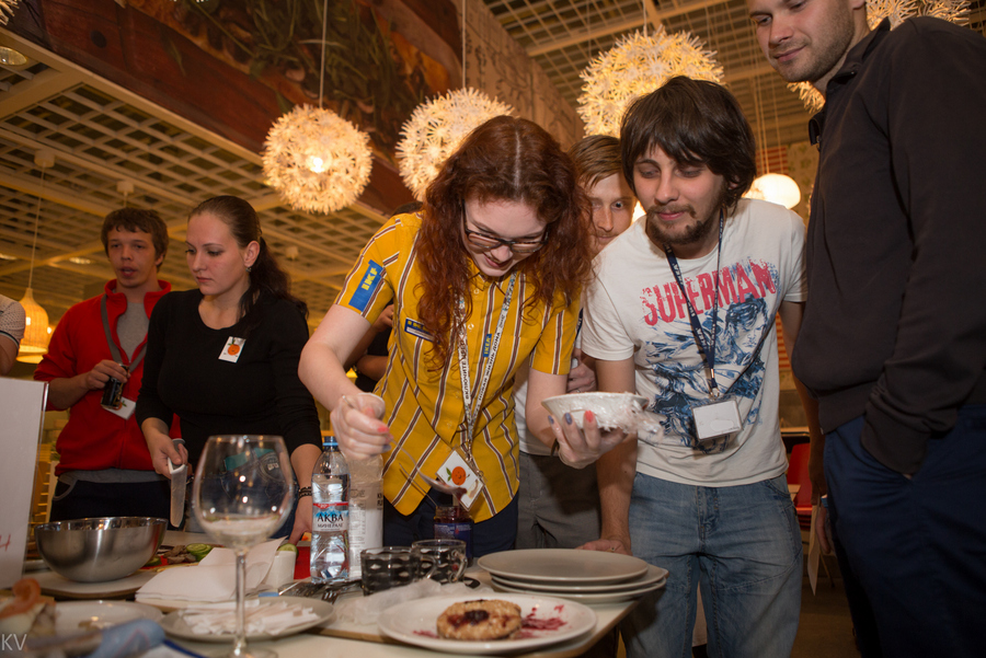 260 человек, 18 команд, 1 час. У каждой команды – одинаковый для всех набор продуктов и определенная жизненная ситуация (семейный ужин, бабушка с внуком на даче, романтическая встреча и т.д.). Задача: придумать блюдо, которое соответствует «икеевскому» принципу «Демократичного дизайна», оформить его и сервировать стол, соответственно заданной ситуации, придумать название блюда, разработать его продающую презентацию на 60 секунд, обосновать, почему это блюдо ждет коммерческий успех.