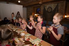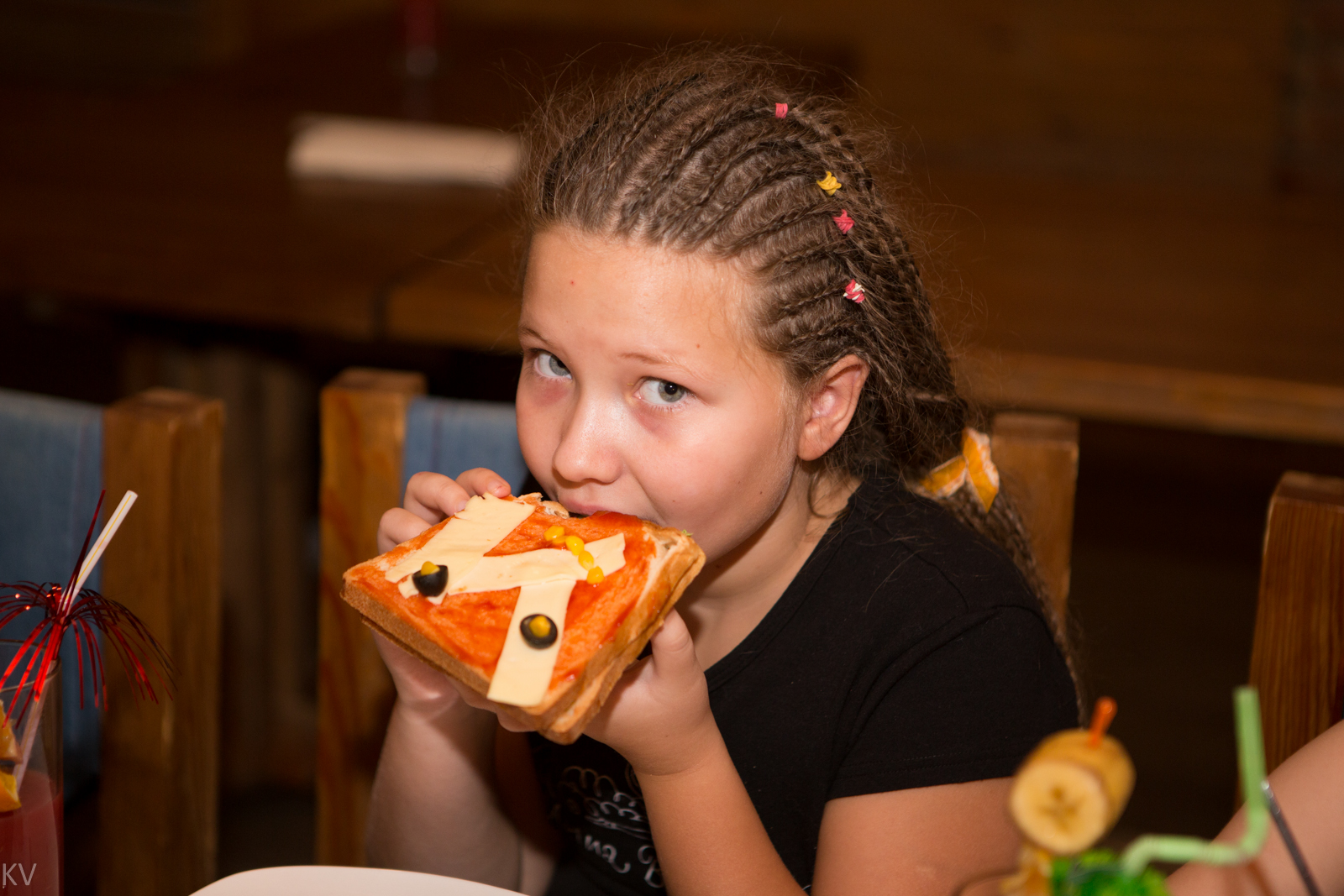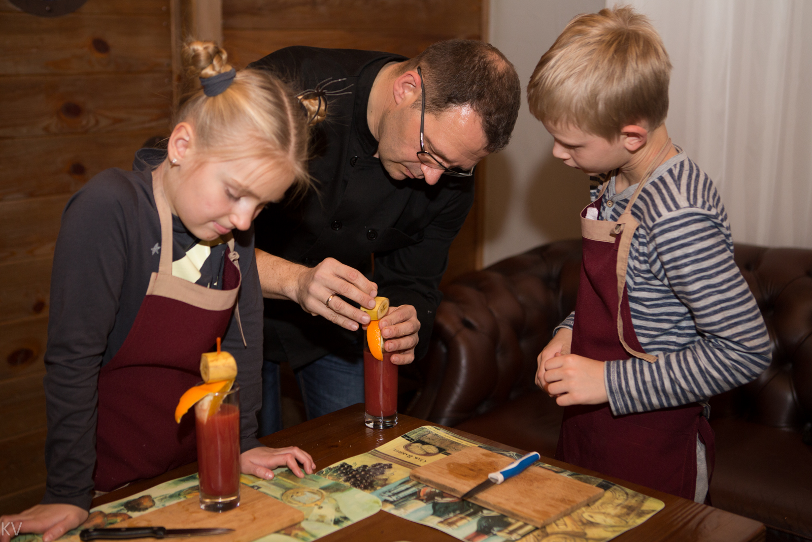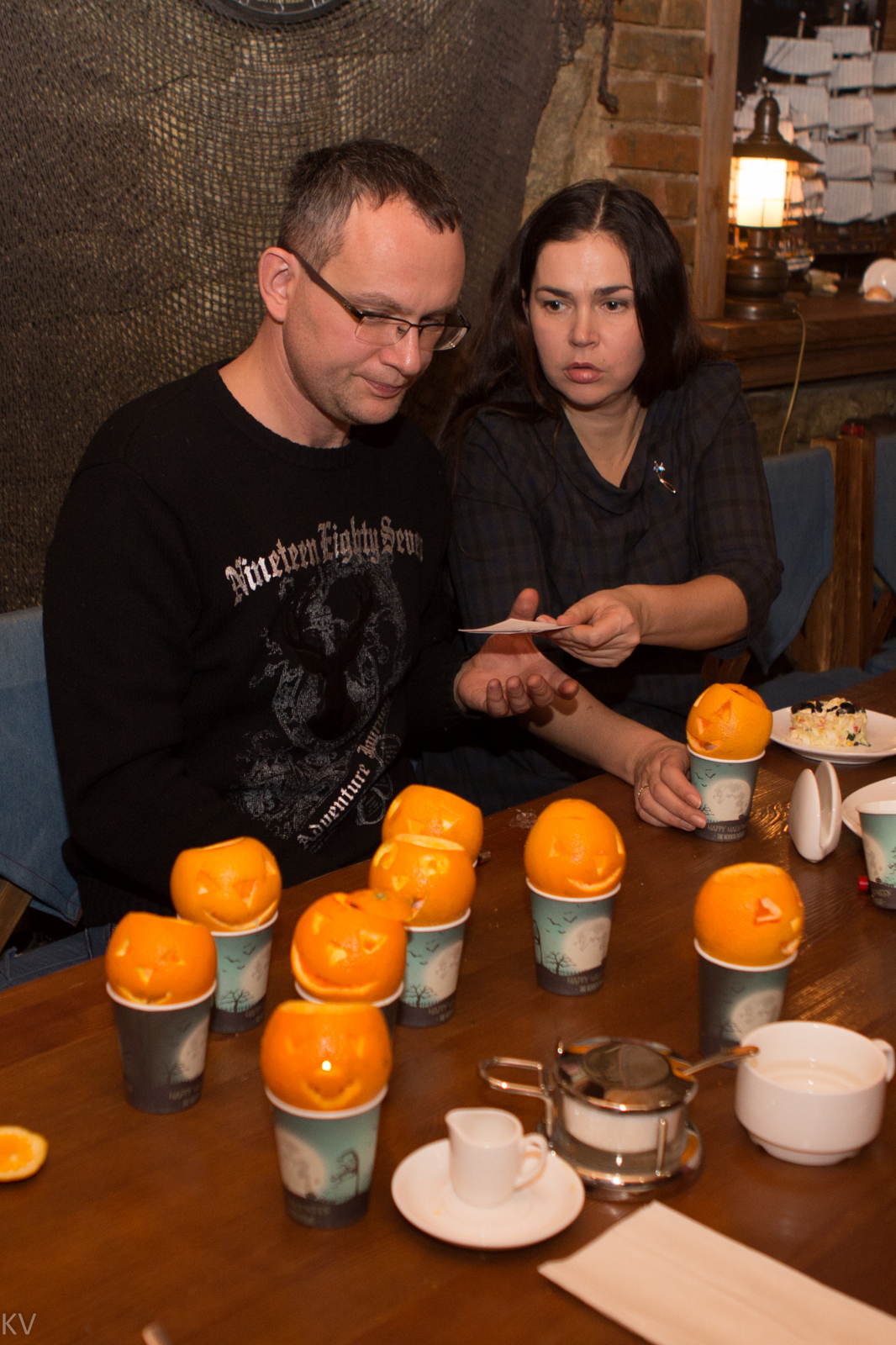 Замечательно отметили Хэллоуин в кафе-баре "Адмирал"! Пока дети под руководством мега-обаятельного шеф-повара Владимира Москалева готовили праздничное угощение - крабовый салат с паучками и паутинкой, сэндвичи-мумии, десерт с бисквитом, взбитыми сливками и мармеладными червячками, а также коктейль "Ведьмино зелье", родители тоже даром времени не теряли. Они занимались карвингом - вырезали из тыквы Джека-Фонаря и наделали маленьких фонариков из апельсинок. Словом, было весело и волшебно, и совсем не страшно. Разве что - страшно вкусно!