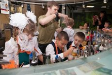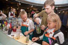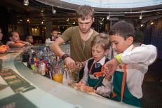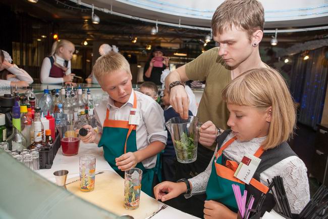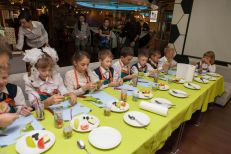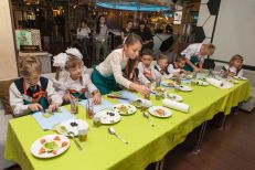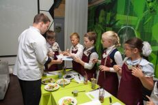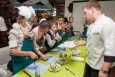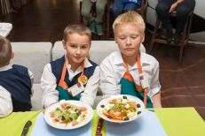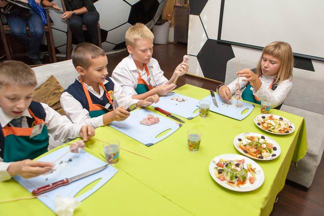 После танцевальной разминки дети вместе с барменом Вадимом Михеевым приготовилиосвежающий греческий фруктовый коктейль под названием «Афродита». А после этого все участники приступили к приготовлению традиционного греческого салата и шашлычков под названием Сувлаки (греческий колорит шашлычкам придавал специальный маринад из йогурта, маслин и ароматных трав). Премудростям национальной кухни юных кулинаров обучал шеф-повар кафе «Маракана» Сергей Снежков.