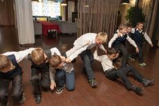 Наш праздник мы решили организовать в греческом стиле: сначала новоиспеченные четвероклассники учились танцевать знаменитый танец «Сиртаки» под руководством хореографа и художественного руководителя Студии танца «Афалина» Натальи Балабановой. Бодрый танец, символизирующий дружбу и единение, оказался как нельзя кстати для начала учебного года: одноклассники с удовольствием кружились в быстром веселом хороводе.