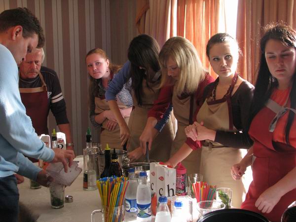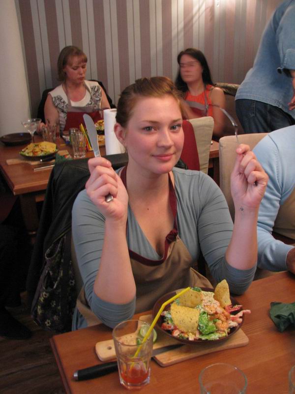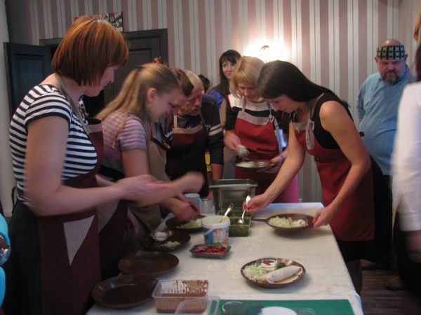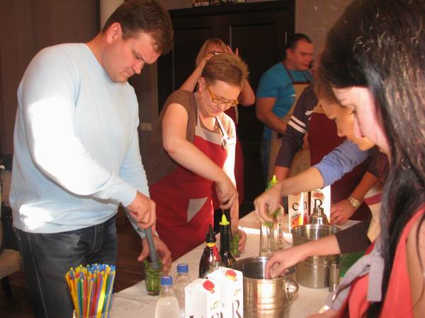 Сначала вместе с барменом Дмитрием гости сделали классические и мексиканские коктейли, а потом приступили к приготовлению мексиканских блюд под руководством шеф-повара Александра Криничного. Шеф увлекательно рассказывал об особенностях кухни «Текс-Мекс» (так на самом деле называется то, что мы привыкли называть мексиканской кухней. Ведь настоящие аутентичные мексиканские блюда, похоже, живут только в Мексике, а знаменитые начос, кесадильи, буритос и фахитас – это примеры мексиканско-техасской кулинарной традиции).