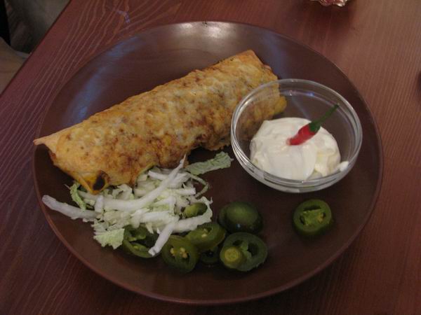 Гости приготовили «Салат индейцев Майя» с кукурузными тортильями, курицей, креветками и несколькими мексиканскими соусами, а так же буритос с курицей и острыми заправками.