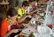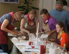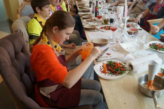 10 августа студия «Foodsmile» провела семейный праздник в ресторане «Миндаль». Несколько поколений большого дружного семейного клана собрались вместе и приготовили вкусный итальянский ужин вместе с шеф-поваром Александром Криничным. В меню были Брускетта с сальсой, Салат из рукколы со свежими ягодами, утиной грудкой и мармеладом из сладкого перца, Кролик томленый с Порто-бело в сливочном соусе, Грушевый пирог с изюмом и шариком ванильного пломбира.
