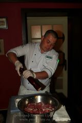 Что может быть лучше, чем аппетитный кусок мяса, поджаренный на открытом огне в дружеской компании? Только кусок мяса, приготовленный по всем правилам! Шеф-повар ресторана «RatsKeller» Дмитрий Солонин поделился с участниками своими секретами – как выбрать правильный отруб мяса, как его правильно разделать, замариновать и поджарить на открытом огне, и как привычный шашлык превратить в настоящее праздничное угощение. Вместе с Дмитрием мы сделали роскошное гриль-ассорти из разных видов мяса - свиную шейку, каре ягненка и цыплят табака, а также печеный картофель в фольге, соус сальса и салат из томатов и красного лука, а потом продегустироваливсе это мясное великолепие с фирменными сортами пива от «RatsKeller». Отдельное спасибо нашим партнерам - магазину "Японские