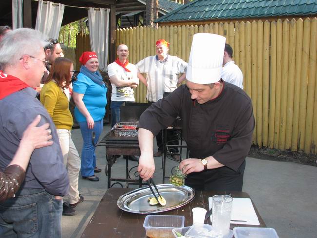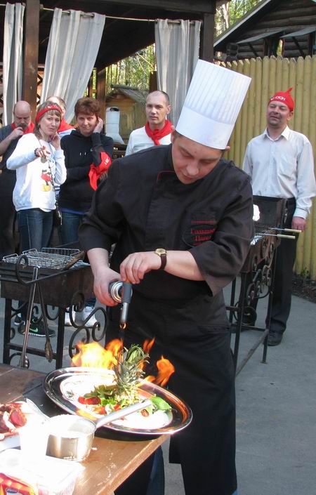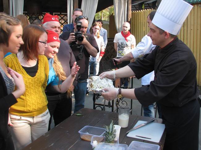 Праздник проходил на свежем воздухе, на турбазе «Пески». Шеф-повар Павел Голышев продемонстрировал гостям как на обычном мангале сделать блюдо ресторанного уровня с яркой подачей. На открытом огне он приготовил ростбиф из говядины в травяном маринаде с соусом из фенхеля, сливок и вина с гарниром из овощей-гриль в медовом маринаде. Гости с удовольствием наблюдали за процессом, а самые активные с интересом помогали шефу.