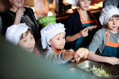 Уж кто-кто, а юные участники мастер-класса грузинской кухни точно готовы к сезону шашлыков и пикников – ведь их учил готовить сам шеф-повар ресторана счастливой грузинской кухни «Хмели-Сунели» Михаил Аракелов! Вместе с ним мы готовили шашлыки по рецепту кавказских дедушек – мариновали мясо с горными травами, насаживали на шампуры и сами жарили на открытом огне! Вдобавок к этому сделали потрясающиехачапури по-аджарски – румяные лодочки с яйцом и сыром сулугуни. И конечно, фирменный напиток «Хмели-Сунели» - домашний лимонад со свежим тархуном. Вкусно было невероятно, а еще весело – это видно по фото!