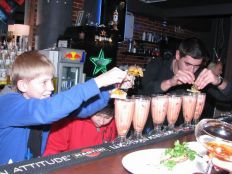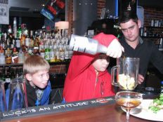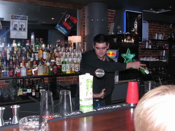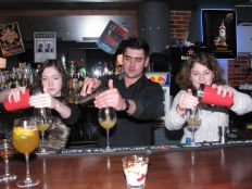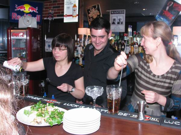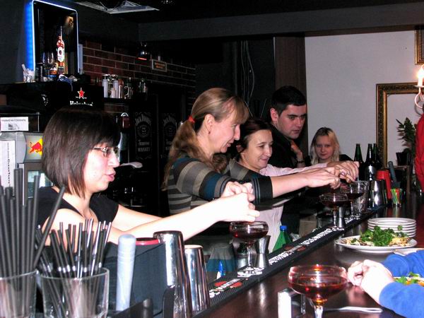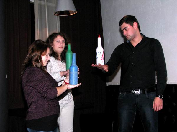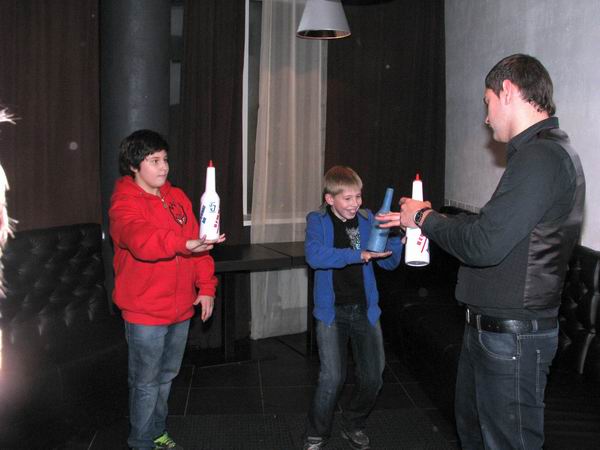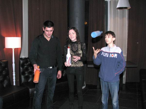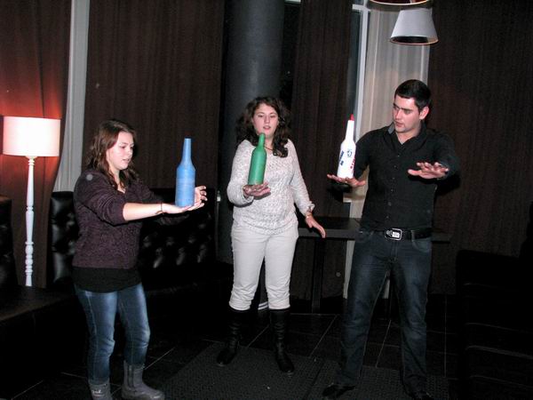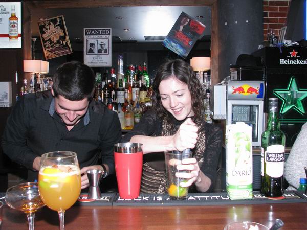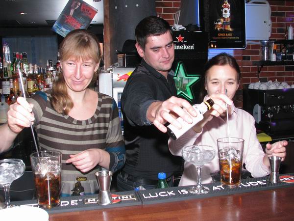 Под руководством бармена Андрея Сафонова гости мастер-класса сначала сделали несколько алкогольных и безалкогольных коктейлей, а потом осваивали элементы флейринга, т.е., например, подбрасывали и иногда ловили специальные небьющиеся бутылки, или удерживали в равновесии бутылки на тыльной стороне ладоней, а общем, всячески, хулиганили и веселились.