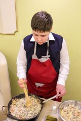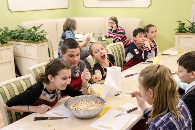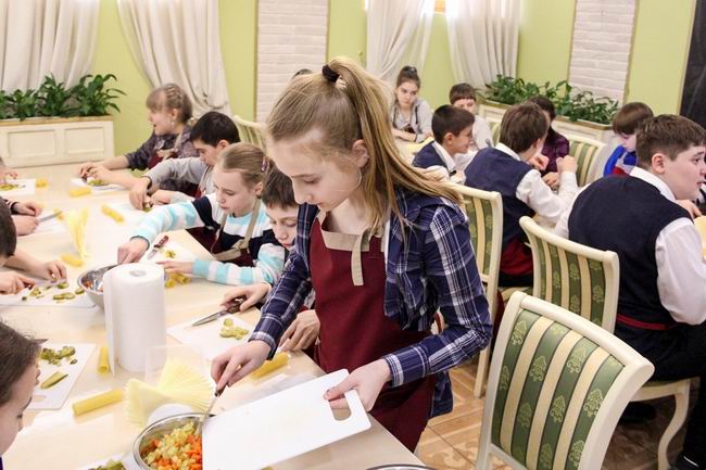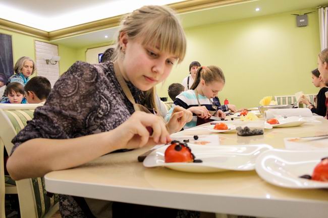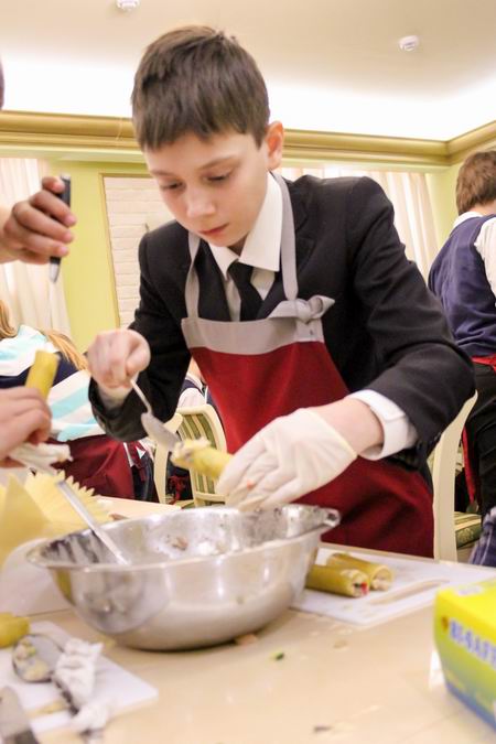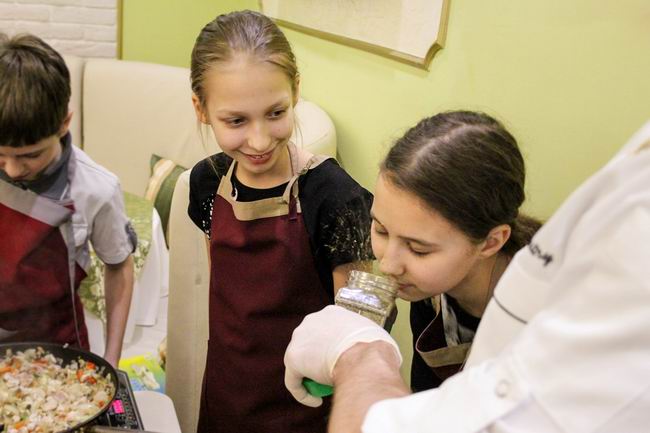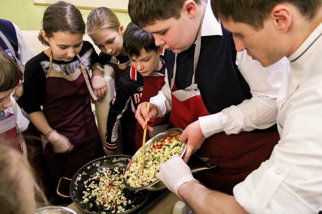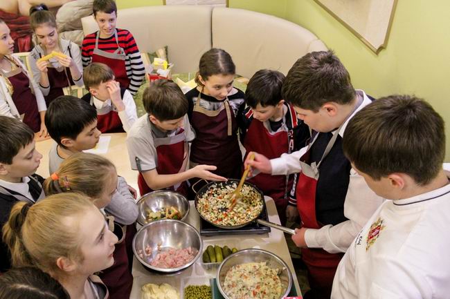 Вместе с шеф-поваром Дмитрием Киршиным ребята приготовили салат Божья коровка и Канелоне с курицей, овощами и соусом бешамель. А бармен Максим провел мастер-класс по приготовлению слоеного коктейля.