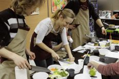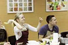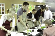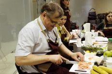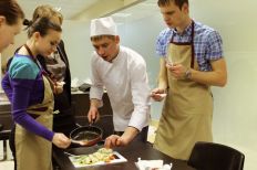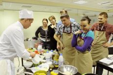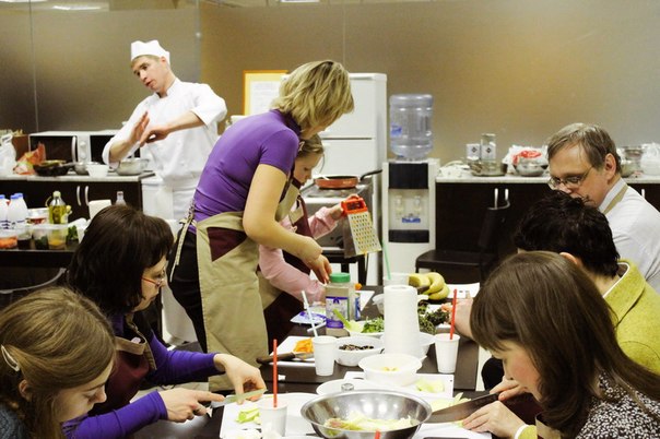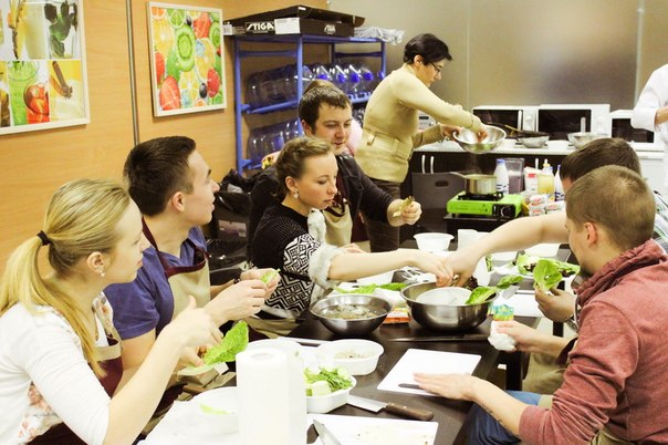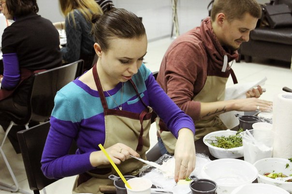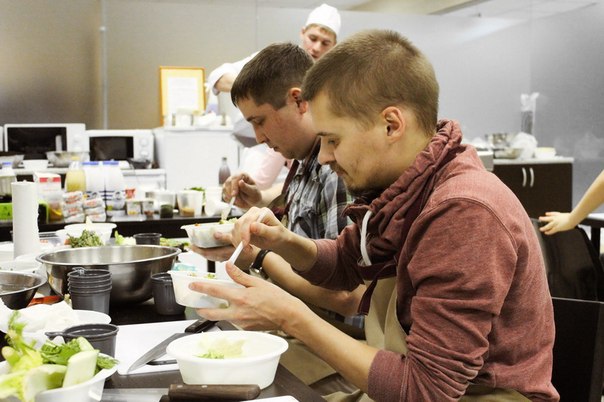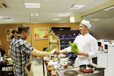 Сначала, поделившись на две команды, сотрудники компании получили одинаковые наборы продуктов и придумали блюда в фирменных цветах холдинга. Затем, под руководством шеф-повара и совладельца ресторана «Примавера» Ивана Хромцова все участники мастер-класса готовили вкусные, красивые и полезные блюда: сальпикон с курицей и заправкой из йогурта и дижонской горчицы, салат с креветками творожно-маскарпоновый десерт с бананами, смузи из фруктов, йогурта и орехов.